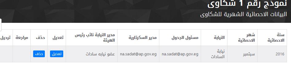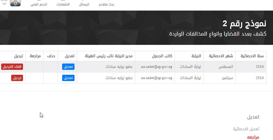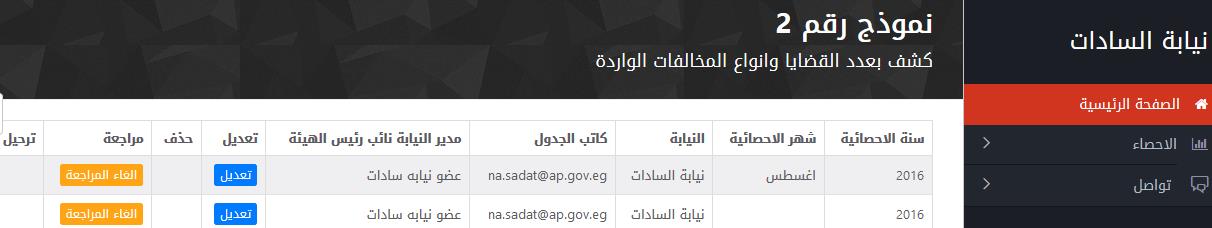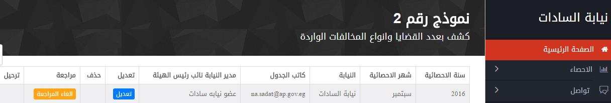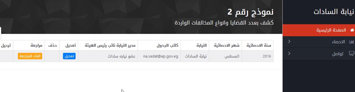واذا تم الغاء المراجعة عن طريق مشرف النيابة يتم ظهور الاحصائية مرة اخرى لدى مستخدم الاحصائية فى النيابة للتعديل