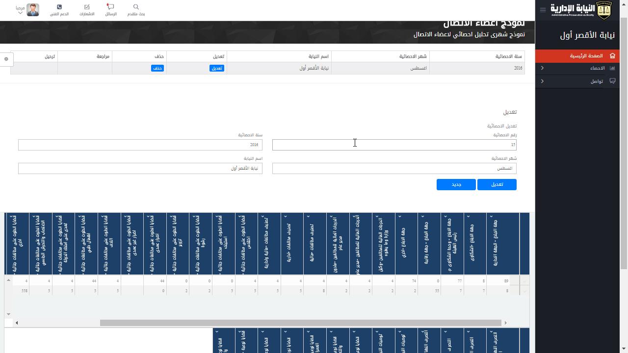 ويظهر فيه بيانات الاحصائية في شكل 2 views يقوم مستخدم النيابة بادخال البيانات والحفظ فتظهر صف فى الجدول فى اعلى الصفحة , ويمكنه التعديل والحذف طالما لم يتم مراجعة الاحصائية عن طريق المشرف او وحدة الاحصاء .