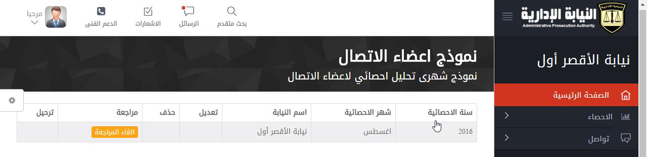 وفى حالة تم الغاء الترحيل يتم ظهور الاحصائية مرة اخرى لدى مستخدمين النيابة فيتم السماح لمشرف النيابة (وليس للموظف) برؤية الاحصائية مع امكانية الغاء المراجعة مرة اخرى .