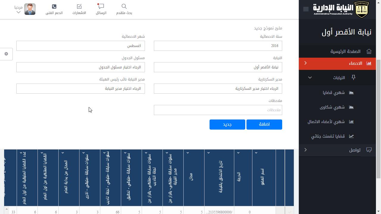 وتختفي الاحصائية لدى مستخدم النيابة كالتالي